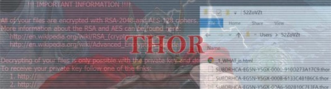creates on the desktop and sprinkles throughout the infected computer’s folders with files. The new names thereof are as follows: _[random digits]_WHAT_is.html, _WHAT_is.html, and _WHAT_is.bmp. The BMP format file will forcibly replace the desktop wallpaper to add an additional layer of victim interaction. The wording in all of these messages didn’t undergo modifications compared to the previous version. The warning still says, “All of your files are encrypted with RSA-2048 and AES-128 ciphers,” which is true. This means that Thor has already scanned the computer for personal files and encoded them all with a rock-solid alloy of symmetric and asymmetric cryptosystems.